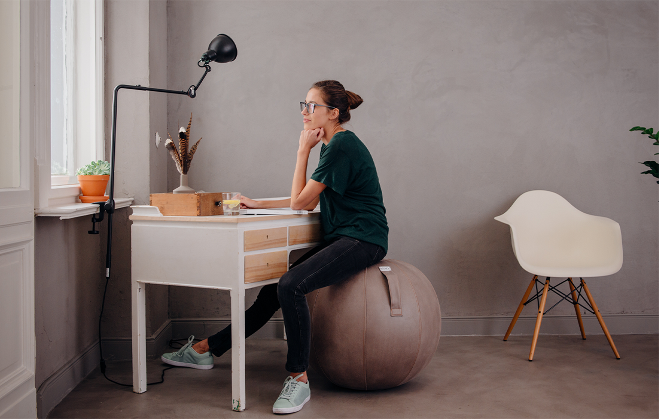 Pour travailler ergonomiquement assis, ton bureau doit correspondre à ta taille corporelle, tout comme le ballon d’assise. Si tu es assis à un bureau inadapté à ta taille, le BOL devrait plutôt s’ajuster à sa hauteur, sinon il ne conviendra pas. Règle générale : hauteur standard de bureau = BOL 65.